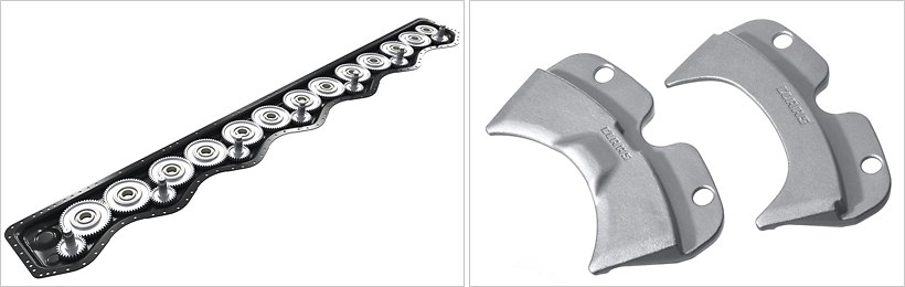 Le carter et le couvercle sont traités ensemble pour assurer un ajustement de précision. Le système de boulonnage innovant garantit la liaison parfaite des deux éléments du carter : la tenue dimensionnelle et la résistance à la flexion sont maximales, le matériau n'est pas affaibli comme il le serait par une soudure. Enfin, la résistance de l'acier à grains fins dans lequel est fabriqué le lamier MAX CUT confère à la machine une longévité maximale, même lorsque les sollicitations sont extrêmes.